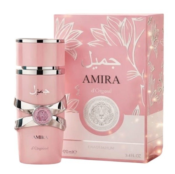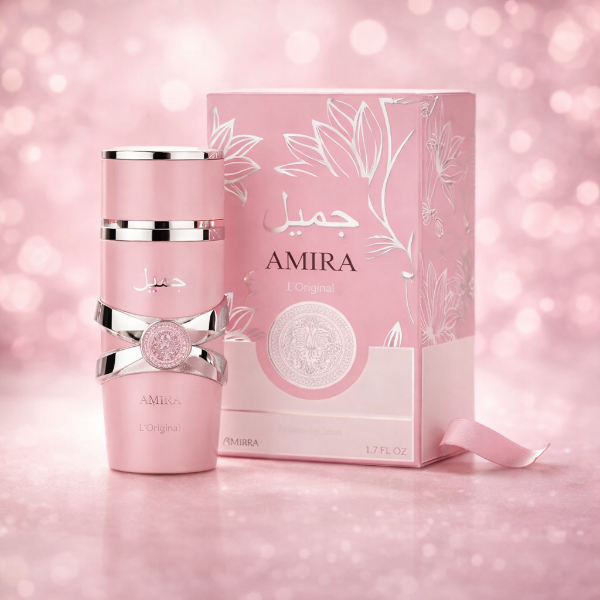 Amira es una fragancia femenina, dulce y sofisticada, ideal para quienes aman los perfumes suaves pero con presencia. Su aroma envuelve la piel con una sensación cremosa y delicada, perfecta para el uso diario o para ocasiones especiales.