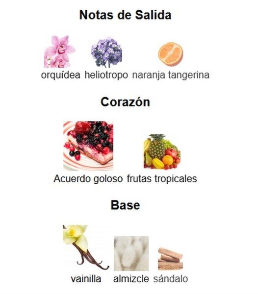 Huele a limpio, dulce y elegante. Es un perfume moderno, juvenil y muy versátil, que deja una estela suave pero irresistible.