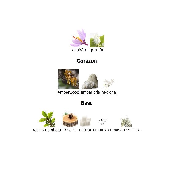- Fondo: Resina de abeto, cedro, azúcar, ambroxan y musgo de roble.